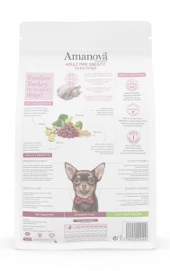 Amanova Adult Mini Obesity Het is een hypoallergene voeding met weinig vet en gemaakt van vers kalkoenvlees als enige dierlijke bron, een heerlijk vlees rijk aan eiwitten, laag in vet en cholesterol.