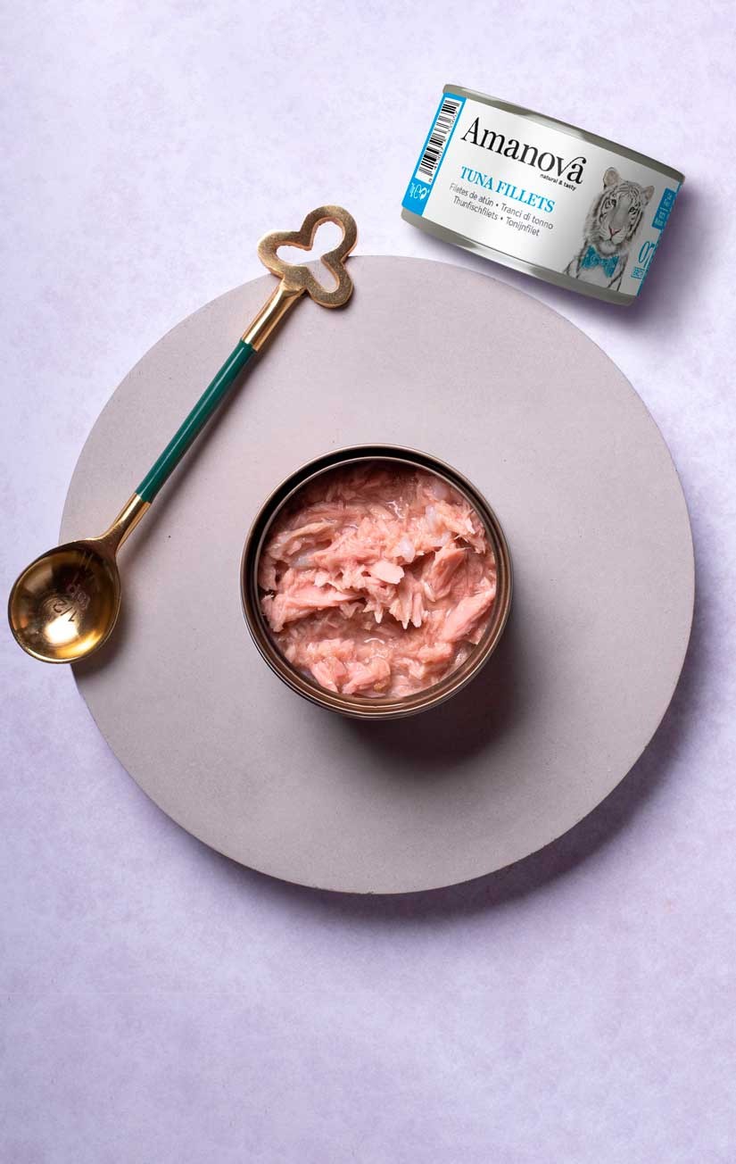 Tijd voor wat lekkers? Probeer wat tonijn. Deze 100% natuurlijke voeding zit boordevol premium skipjack tonijnfilet. Het is zo aantrekkelijk dat u er zelf van zou willen proeven. Deze aanvullende kattenvoeding is bedoeld als tussendoortje, dat af en toe gegeven kan worden naast de droogvoeding van uw kat. Op deze manier creëert u een gezond en uitgebalanceerd dieet. Tonijn bevat veel eiwitten en is een bron van natuurlijke taurine, wat zorgt voor een goede werking van het hart en de ogen van uw kat. Het bevat verder omega-3 vetzuren voor een gezonde huid en stralende vacht. Verwen uw kat met Amanova en merk het verschil – uw kat zal u dankbaar zijn!
