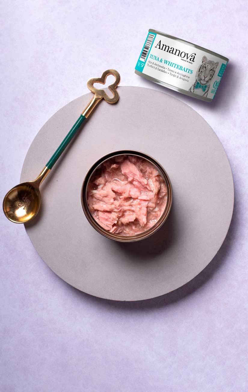 Deze lekkere viscombi maakt dit de perfecte verwenvoeding! Deze 100% natuurlijke voeding zit boordevol premium skipjack tonijnfilet en witvis. Het is zo aantrekkelijk dat u er zelf van zou willen proeven. Deze aanvullende kattenvoeding is bedoeld als tussendoortje, dat af en toe gegeven kan worden naast de reguliere voeding van uw kat. Op deze manier creëert u een gezond en uitgebalanceerd dieet. Tonijn bevat veel eiwitten en is een bron van natuurlijke taurine, wat zorgt voor een goede werking van het hart en de ogen van uw kat. Witvis is rijk aan essentiële mineralen zoals, kalium, calcium en vitamine A die belangrijk zijn voor de ogen en huid. Voor gelukkige en gezonde katten, verwen ze met Amanova.