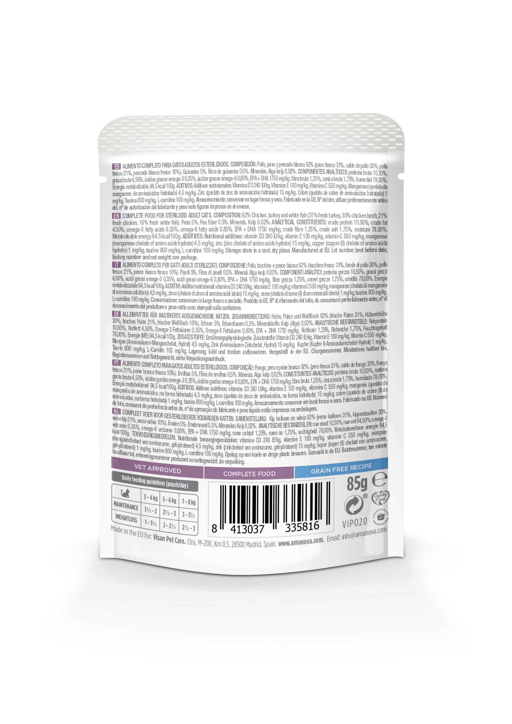 Home » Categorieen » Hond » Verzorging » Amanova cat sterilised fish & turkey 85gram P12