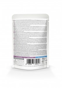 Analytische bestanddelen: ruw eiwit 10,50%, ruw vet 04,50%, omega-3 vetzuren 0,35%, omega-6 vetzuren 0,80%, EPA + DHA 1750 mg/kg, ruwe celstof 1,25%, ruwe as 1,75%, vochtigheid 78,00%. Metaboliseerbare energie 94,5 kcal/100g.