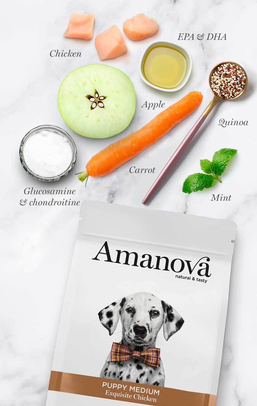 Home » Categorieen » Hond » Hondenvoeding » Brokken » Sjef cuisine yami » Amanova puppy medium Exquisite chicken 2kg