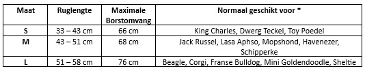 *Hondenrassen kunnen variëren in lengte en borstomvang en zijn niet beperkt tot bepaalde maten. Ze worden alleen als referentie getoond. Meet uw hond om de juiste maat te garanderen.