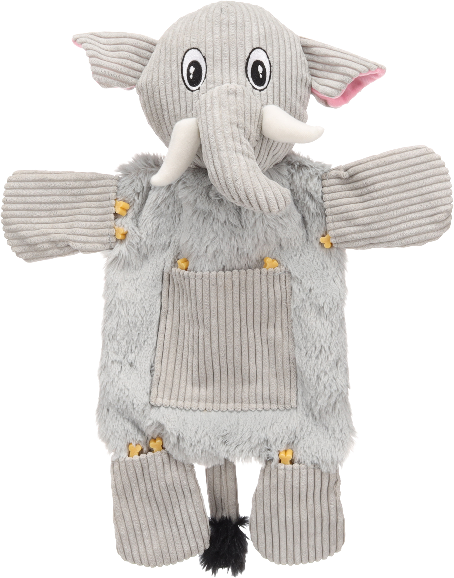 Laat je harige vriend lekker ravotten met dit schattige grijze olifantje! Gemaakt van zacht pluche en afgewerkt met ribfluweel. Stop wat lekkers in z'n buik en laat het speelplezier beginnen met squeaker en knispergeluiden. Plezier gegarandeerd!