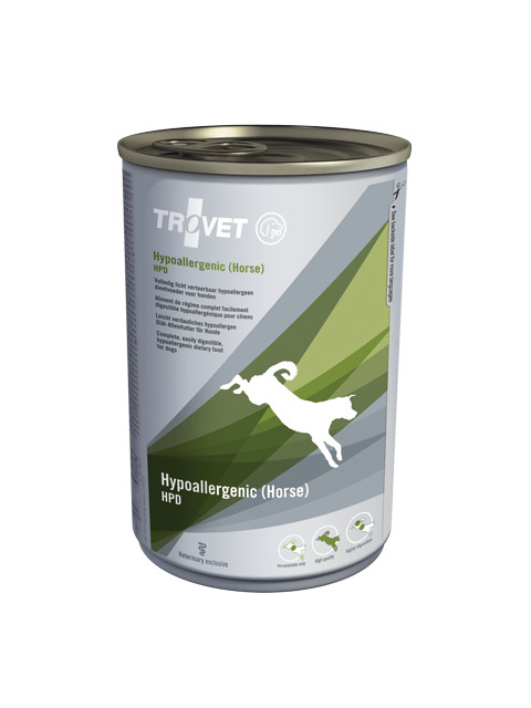 TROVET Hypoallergenic HPD is hypoallergene voeding die alle essentiële voedingsstoffen bevat. De unieke combinatie van paard en aardappel veroorzaken zelden een overgevoeligheidsreactie. Dit komt mede omdat Hypoallergenic HPC (Horse) van Trovet uit slechts één eiwitbron (paard) en koolhydratenbron (aardappel) bestaat. Door je viervoeter een hypoallergeen dieet voor te schotelen, verklein je het risico op immunologische reacties (voedselallergie) en niet immunologische reacties (voedselintolerantie) in de vorm van huid- of maagdarmklachten. Daarnaast draagt het bij aan het reduceren van vervelende allergiereacties, waaronder krabben, schuren of bijten.