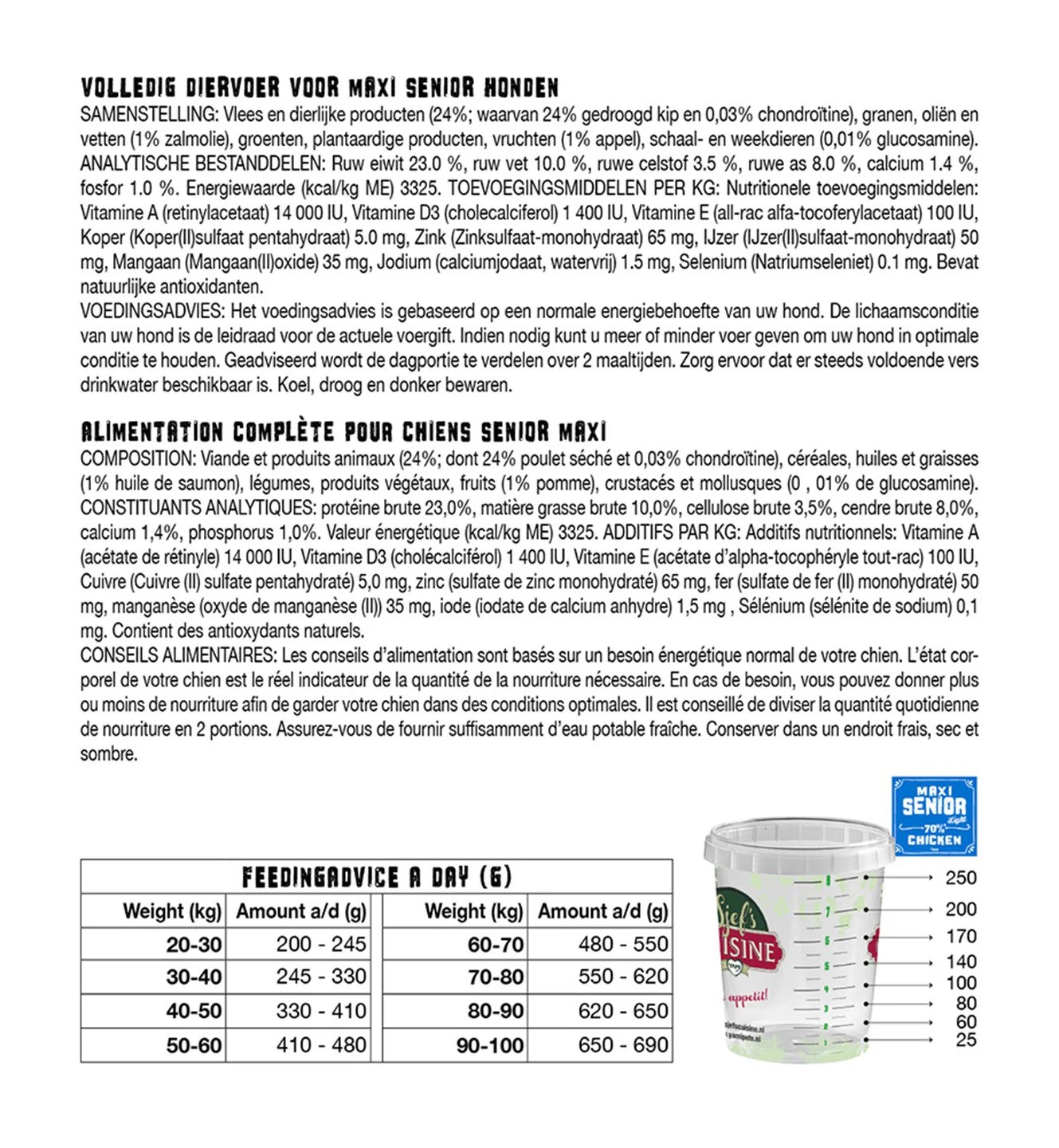 YamiPets Sjef's Cuisine Maxi Senior wordt geadviseerd voor oudere honden van de grotere hondenrassen.